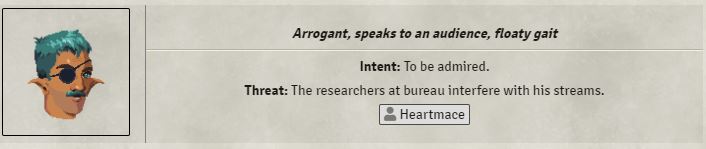 - Intent: This is the goal of the agent. It is used to inspire how they might interact with the player characters.